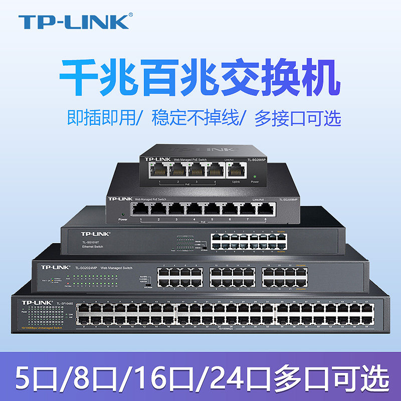 TP-LINK 5-mouth 8-mouth 16 mouth Doostomy POE Power supply 1100 trillion Switch Student Dormitory Dorm Room Small Home Broadband Network Road Splitter Set Full to send the shopkeeper recommendation