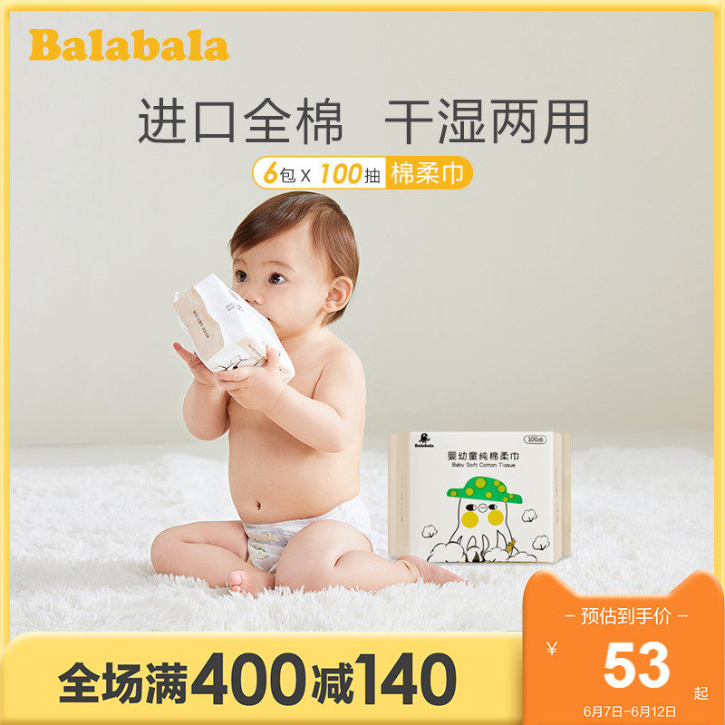 Bala bala baby two soft cotton cotton baby dry and wet towel wipes 100 * 6 packs