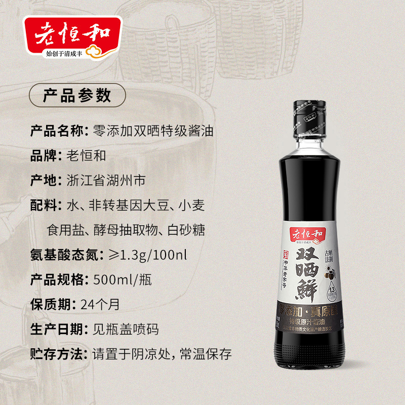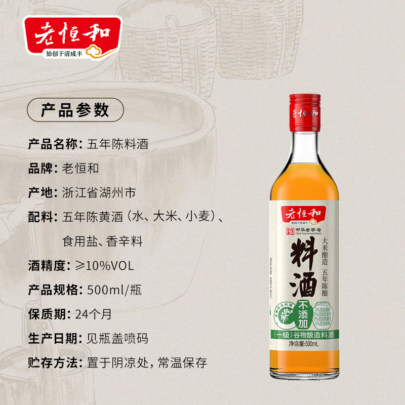 Laohenghe five-year-old rose rice vinegar double-sun premium soy sauce five-year-old cooking wine fresh soy sauce 150ml