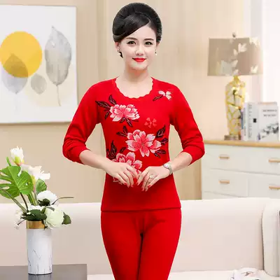 This year's red hot clothes female ox year plus velvet padded suit middle-aged and elderly autumn clothes sanitary pants mother winter