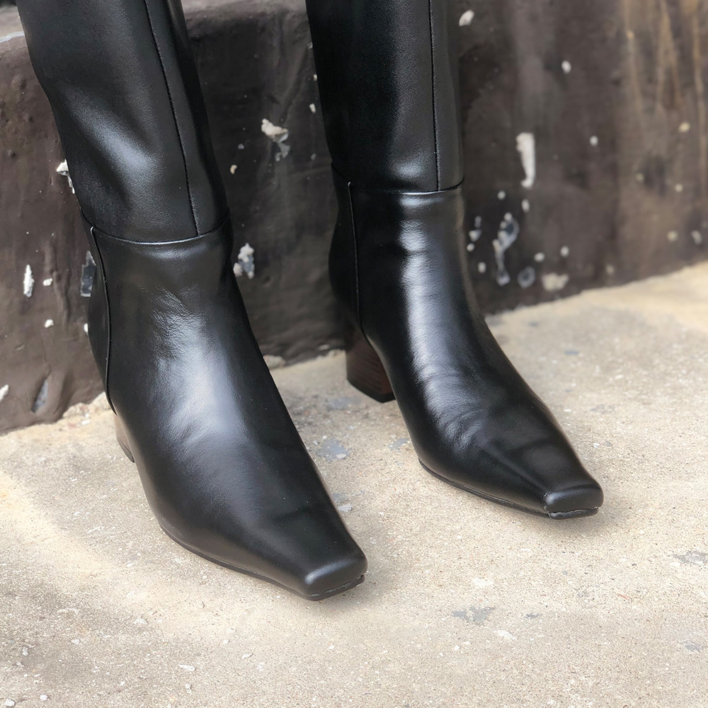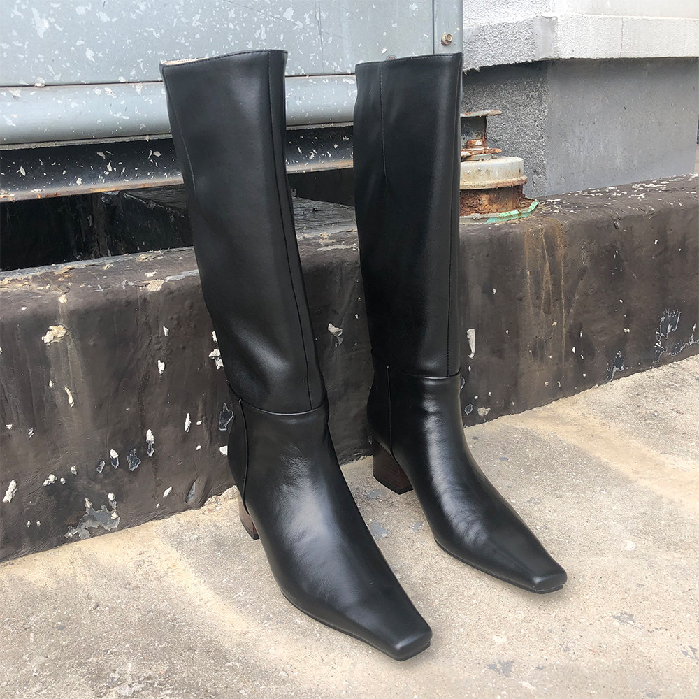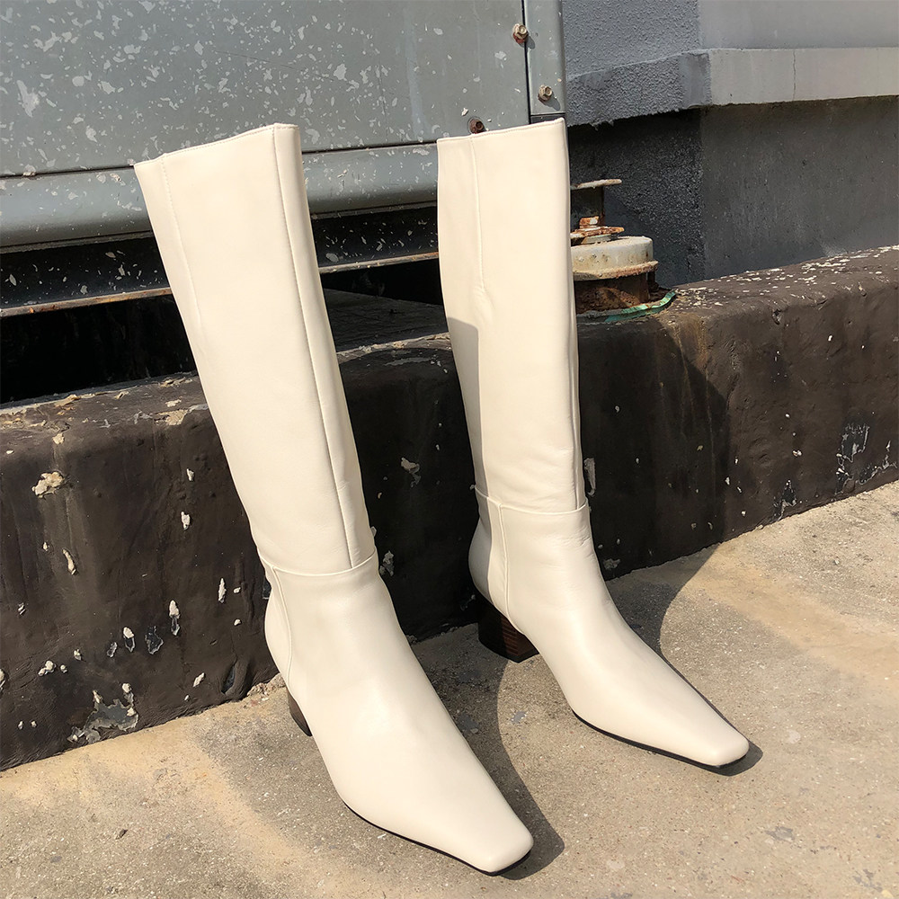A W pointed (black and white) riding boots 2020 genuine leather high cylinder boots with sleeves long boots High heel horse boots female