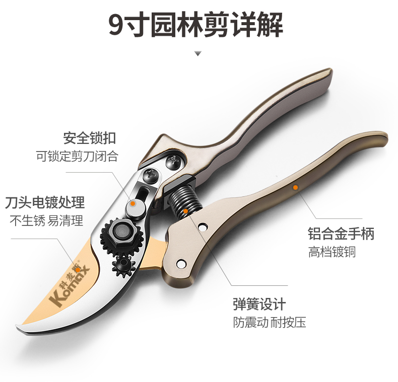Komez 9 Inch Garden Sheared Pruning Twigs Fruit Tree Scissors Gardening Cut Flowers Cut Powerful Plant Cut