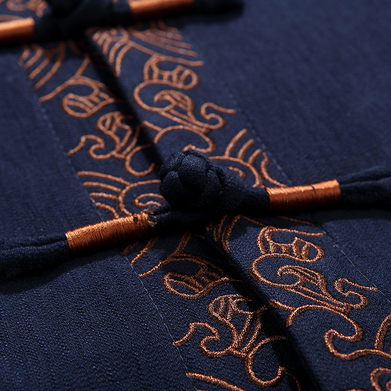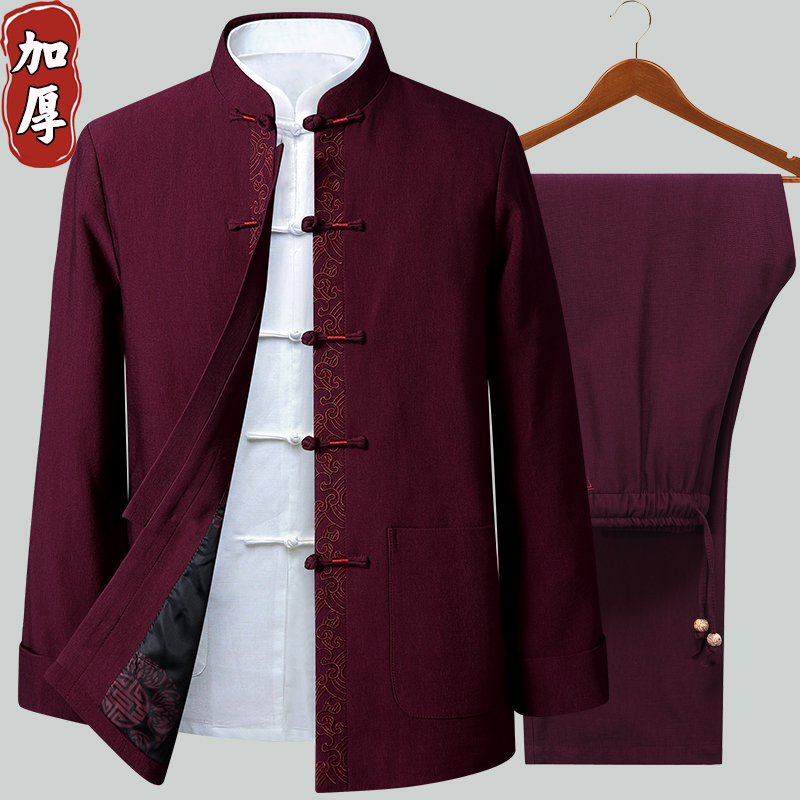 Middle-aged and elderly spring and autumn tang costume men's cotton linen set Chinese embroidered Hanfu Chinese style long sleeve large size dad winter coat