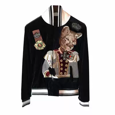 Hong Kong trendy brand large size jacket men's embroidered crown dog head duke slim-fit jacket Hong Kong style couple stand-up collar baseball suit
