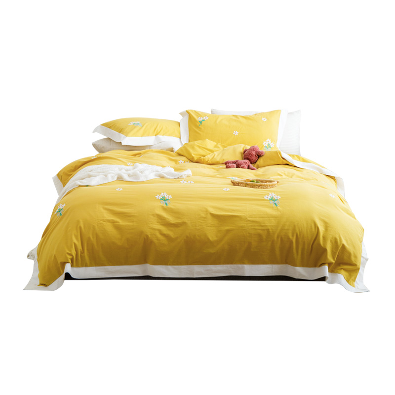 ins wind small fresh embroidery cotton washed cotton four-piece set literary girl heart quilt cover sheets Fitted sheet bedding