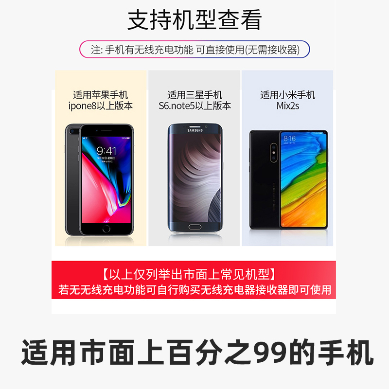 Wireless charger 1 set of Apple back clip receiver 1 set of Android back clip receiver 1 set (upper width and lower width) Android back clip receiver 1 set(upper width and lower width) Type-c