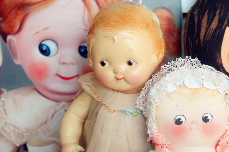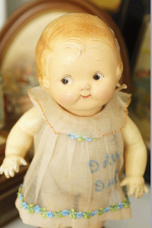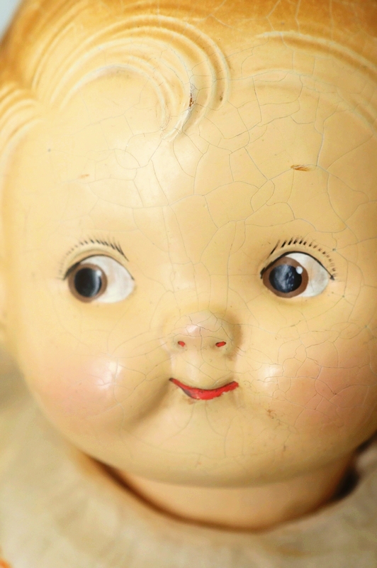 19-09 US 1913 Antiques Chart Rare Total Synthetic Tomato Soup Skewed Eyes Fat Doll TP29