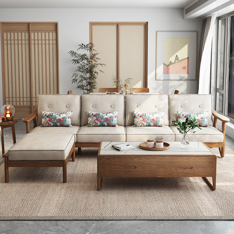 Nordic simple fabric sofa combination removable and washable small apartment living room all ash solid wood concubine corner sofa