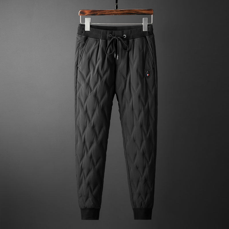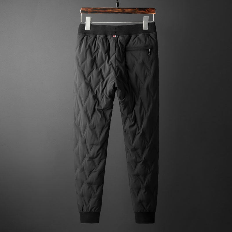 Winter new down pants men's fashion V-shaped embossed anti-running velvet white duck down warm casual down pants to wear outside