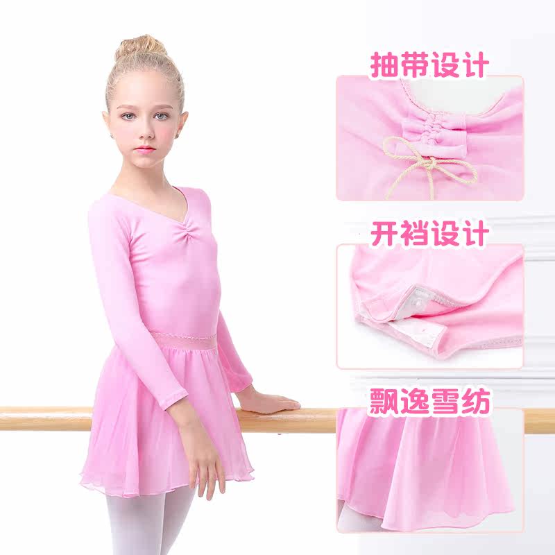 Children's dance clothes spring and autumn powder long-sleeved cotton practice clothes girls dance clothes Chinese dance practice clothes chiffon skirt suit