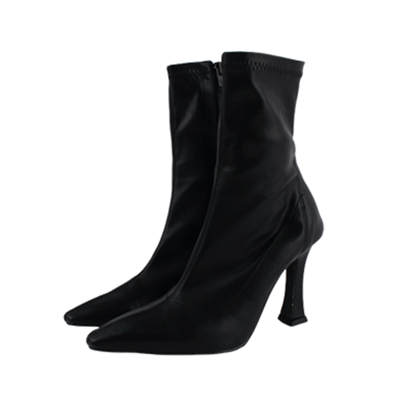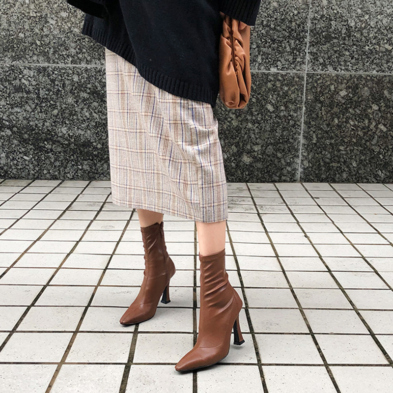 Retro skinny mid-tube nude boots women's 2022 winter new small square toe stiletto heel elastic boots niche leather side zipper ankle boots
