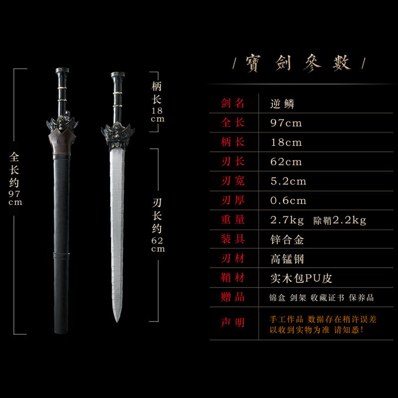 Longquan Tibetan Feng Han Feizi Inverse Scaled Sword Large Metal Weapon Film and Television Anime Sword Town House Sword Not Edged