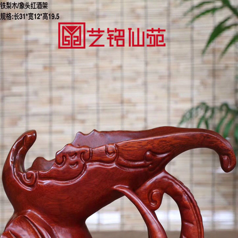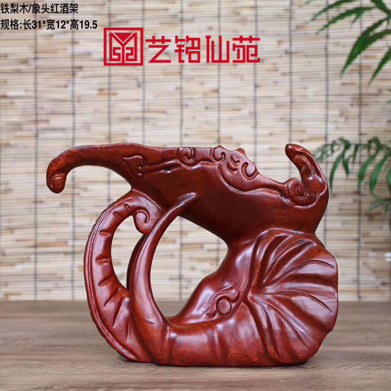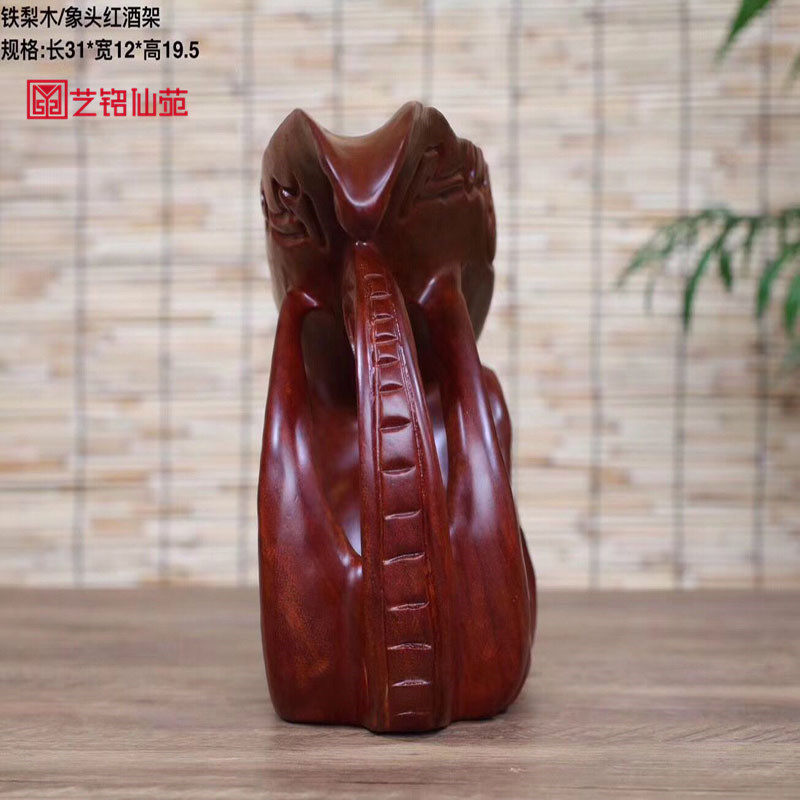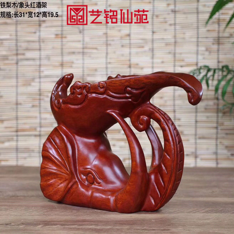 Iron Pear Wood Elephant Head Red Wine Rack Solid Wood Engraving Elephant Red Wine Bottling Wine Cabinet Furnishing Creative Home Decoration Goods