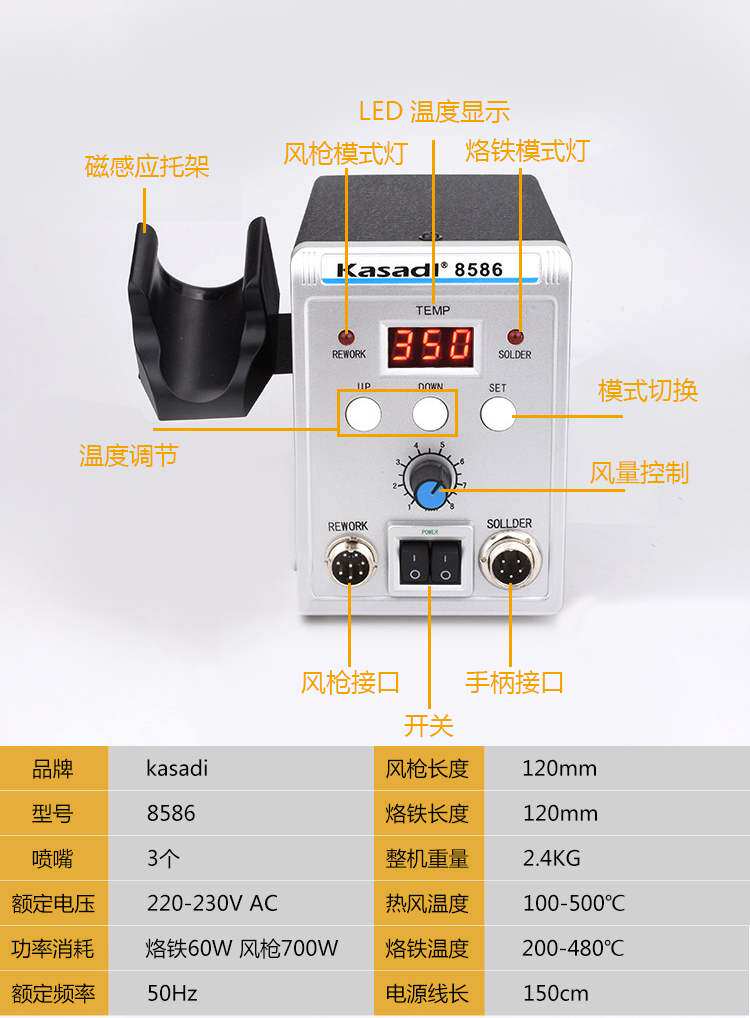 Casa Di 850A hot air gun 858D hot air welding stand 8586 digital hot wind gun electric blowing pull welding table