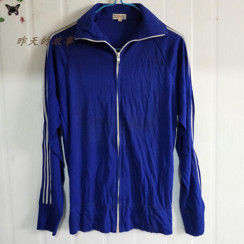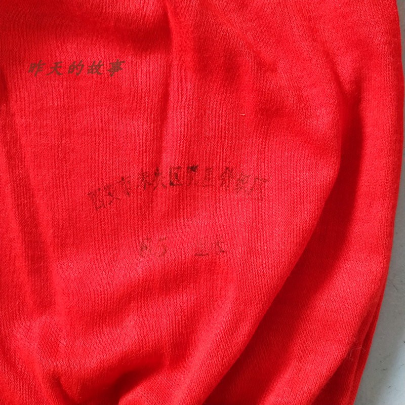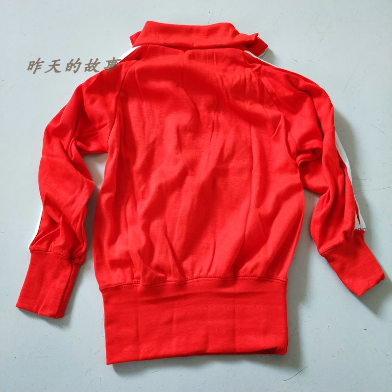 Nostalgic old stock 80 s red acrylic shirt autumn clothes sportswear Red Blue 2 bars