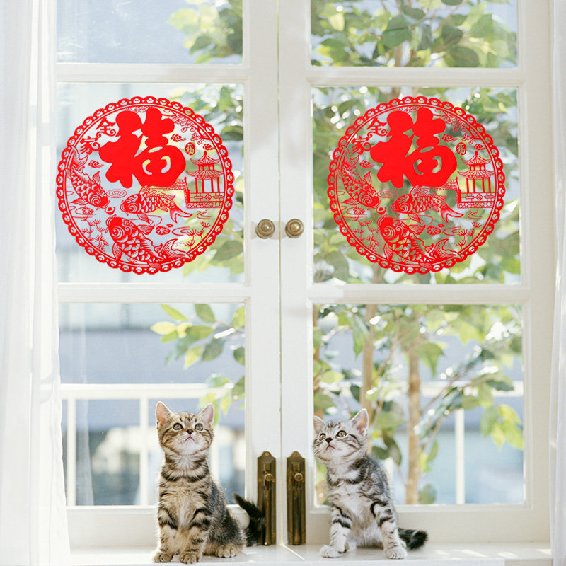 Fu word paper-cut window grille electrostatic paste glass paste housewarming New Year's Day Spring Festival New Year decoration supplies wall stickers door stickers