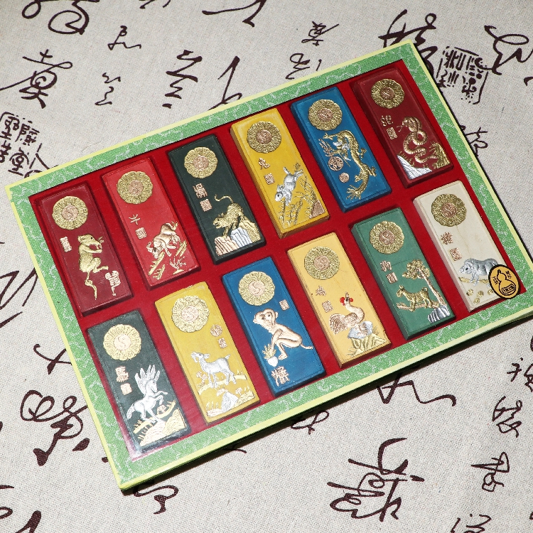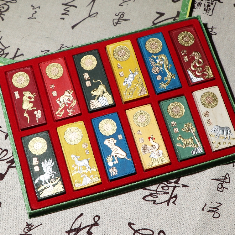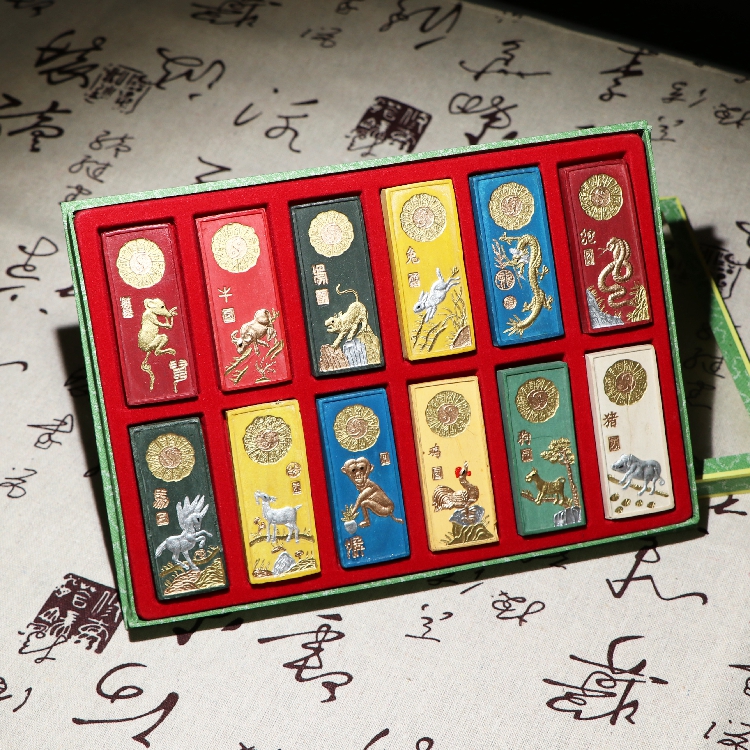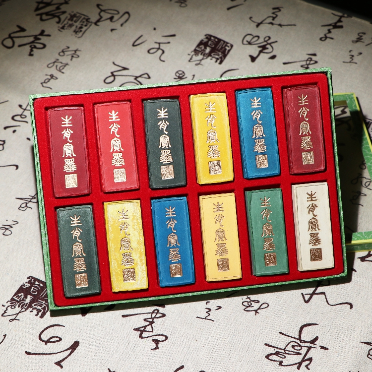 12 two ink ingots color ink pigment ink cinnabar ink old Hu Kaiwen oil painting ink block study four treasures ink strip gift