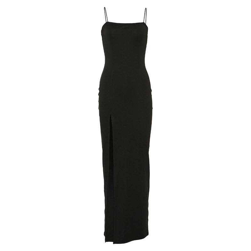 Sexy thin suspenders, one-word neck, self-cultivation, open-back, open-leg high-split dress, elegant evening dress, black women
