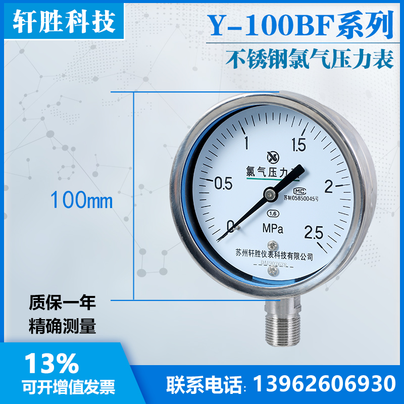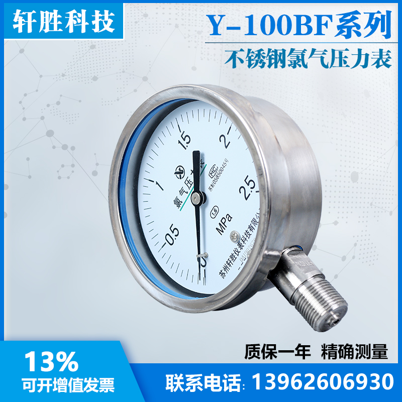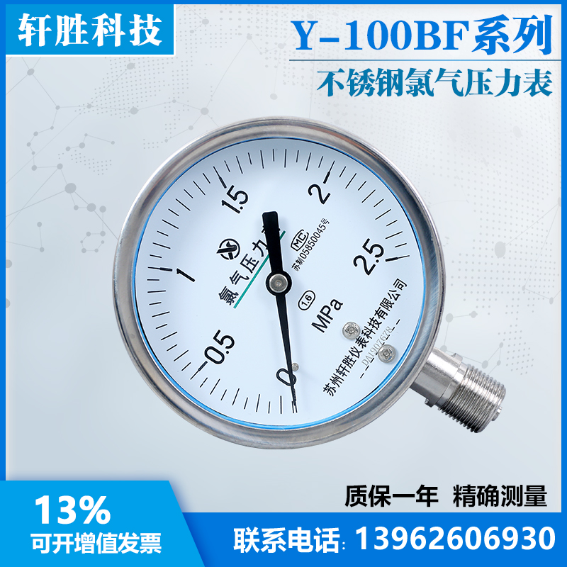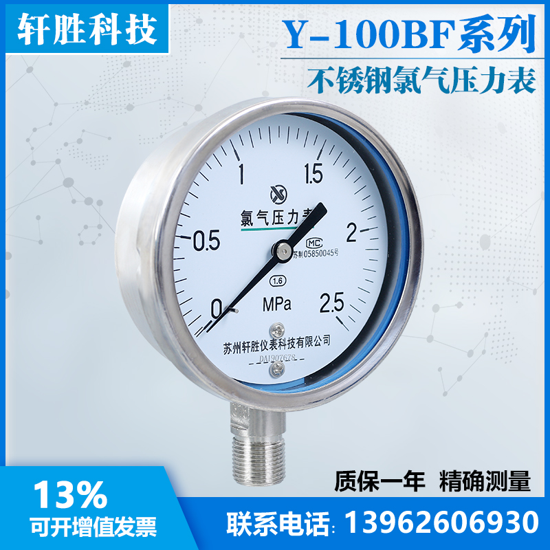 Y100BF 2 5MPa stainless steel chlorine gas pressure gauge Chlorine pressure gauge Suzhou Xuansheng Instrument