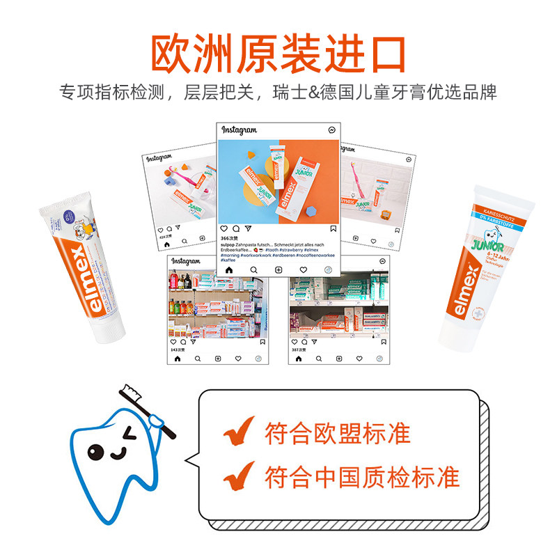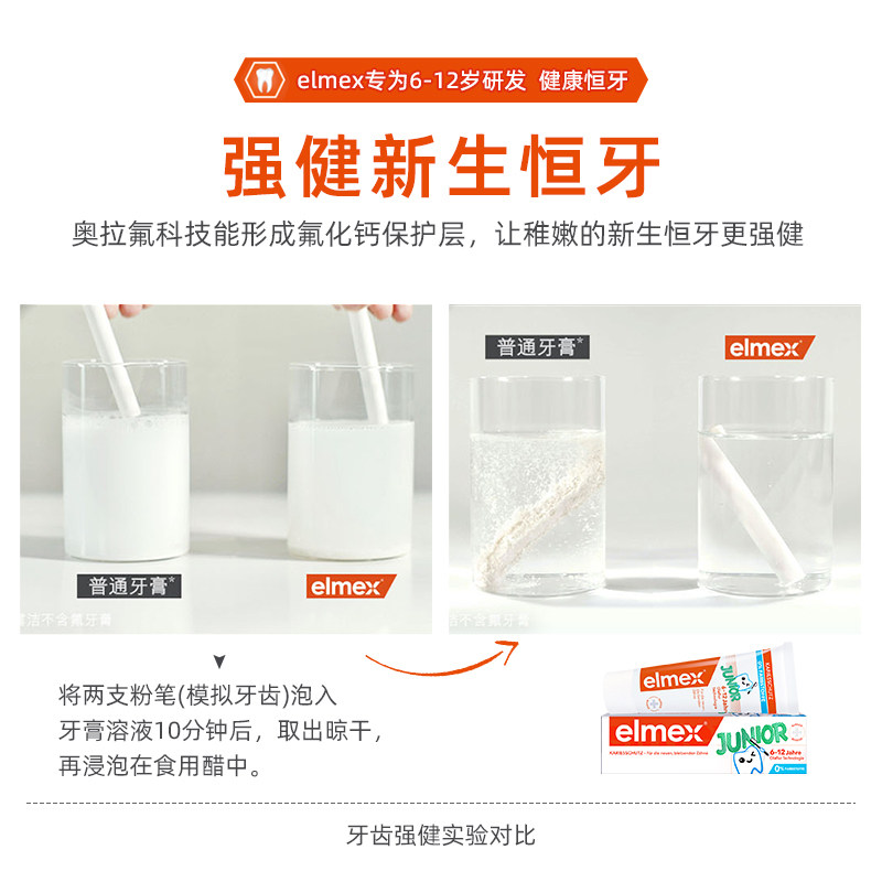 Elmex toothpaste 0-6 years old Elmex toothpaste 6-12 years old Elmex toothpaste Adult MMDB toothbrush Single Elmex toothpaste 50mL MDB toothbrush yellow E