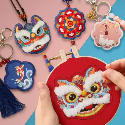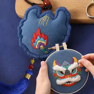 Awake lion hand embroidery diy material bag peace charm couple self-embroidery Tanabata send boyfriend car pendant piece keychain blessing