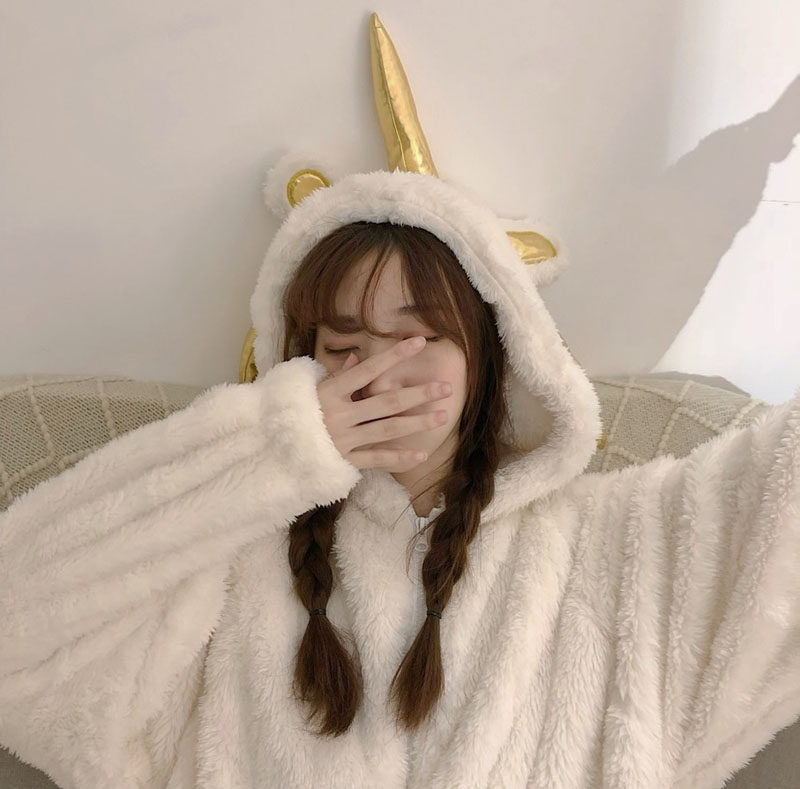 2022 new cute cartoon anime pajamas female autumn and winter students thickened sweet one-piece home clothes to keep warm in winter