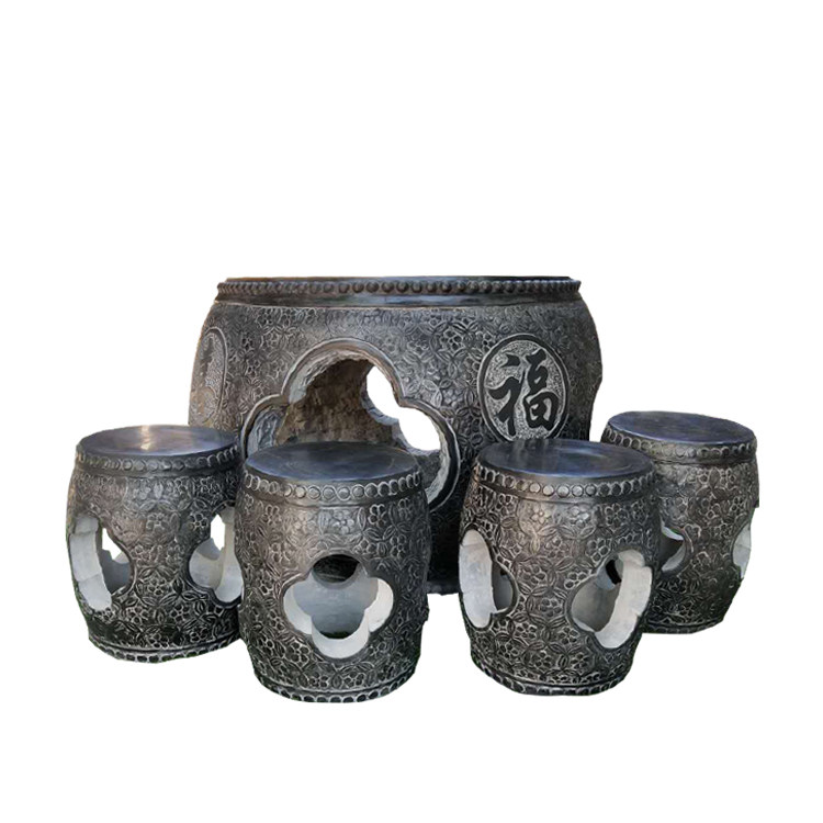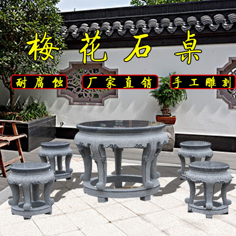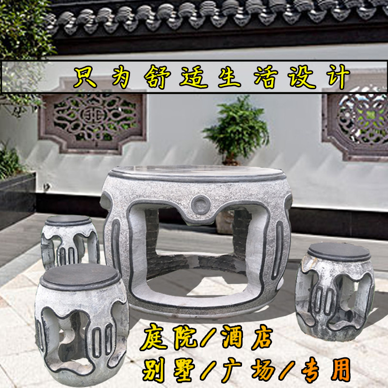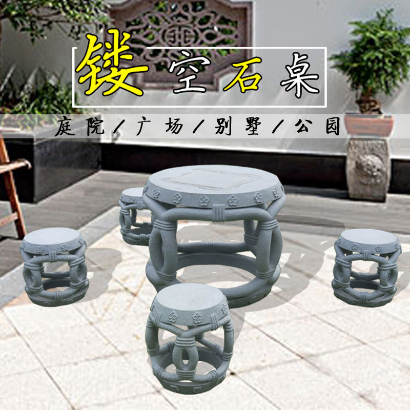 Stone table stone stool natural antique Chinese bluestone carving square round tea table garden outdoor balcony table and chair decoration