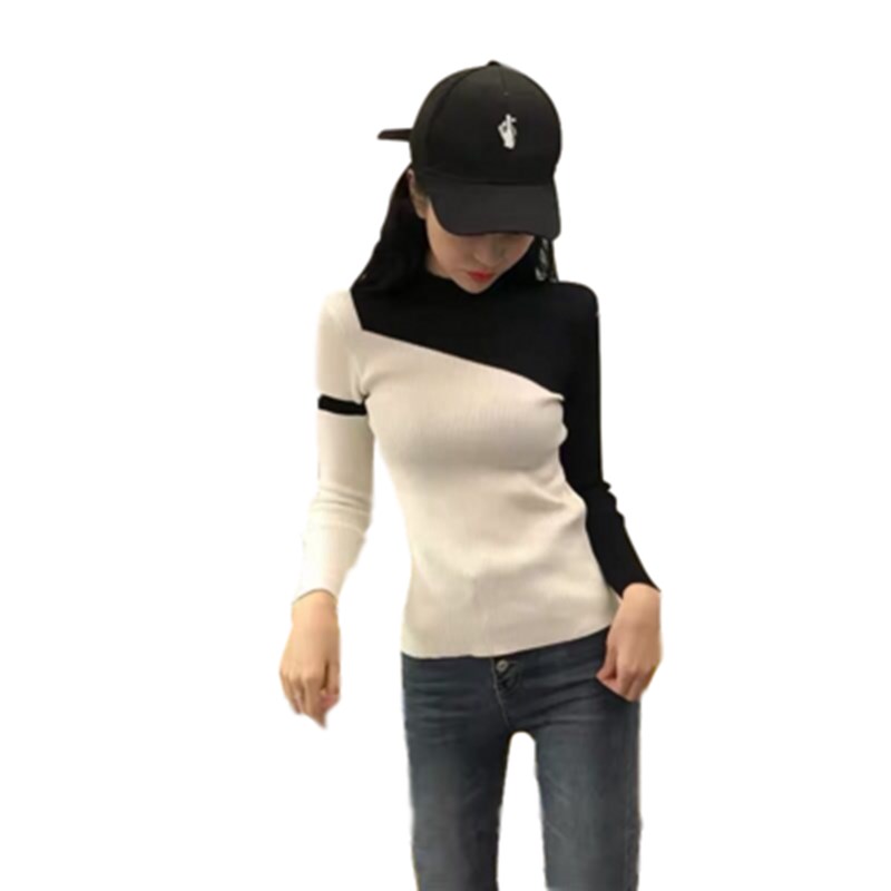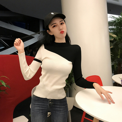 Hong Kong semi-turtleneck knitted base shirt women's 2020 autumn and winter new sweater chic tight lining top long sleeve