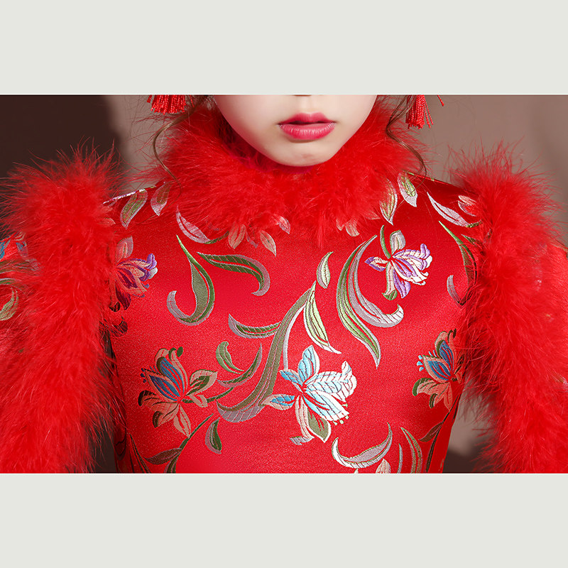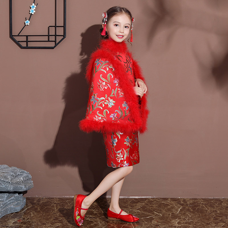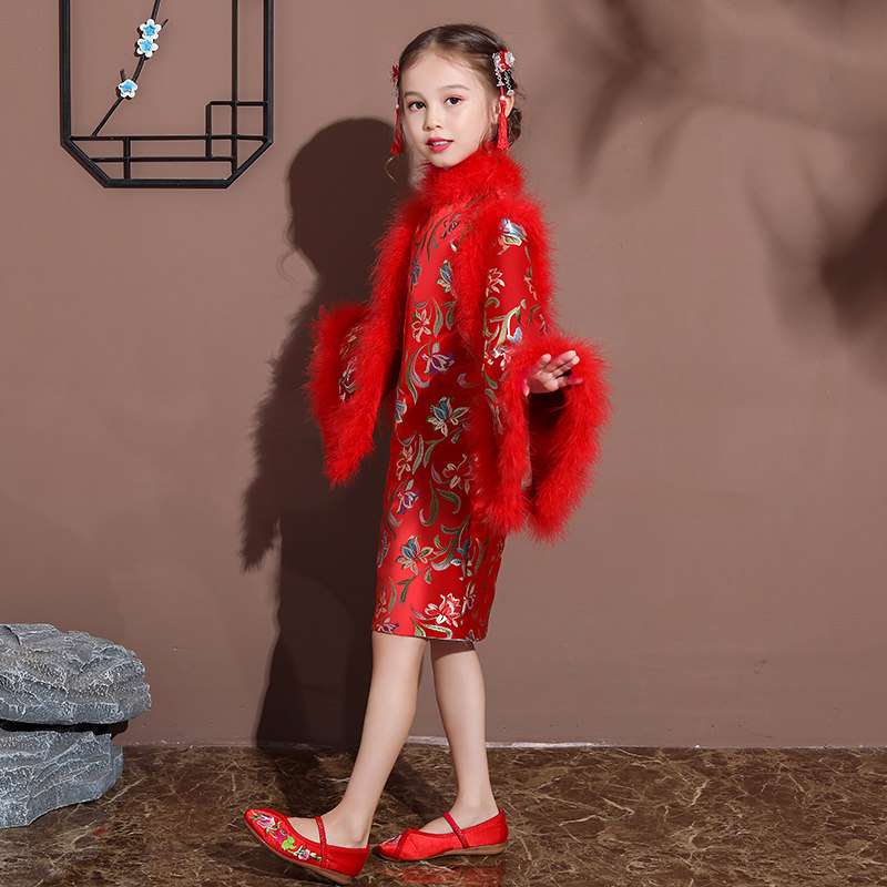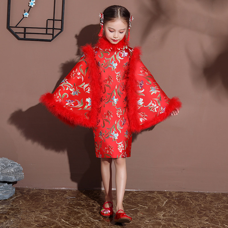 Girls Hanfu Cheongsam Chinese style Children's Tang dress Western style Autumn and winter long-sleeved velvet thickened Princess New Year suit