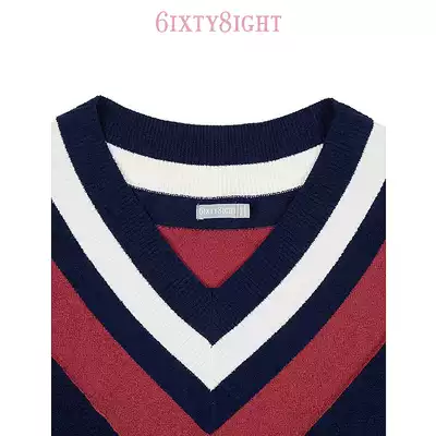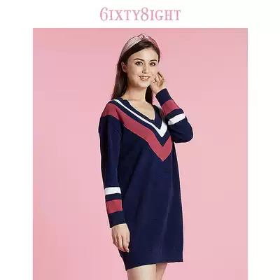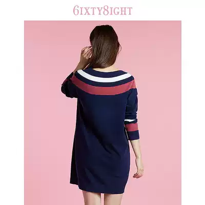 6IXTY8IGHT 68 official fashion retro V-neck stripe comfortable home night dress women autumn and winter HW07645