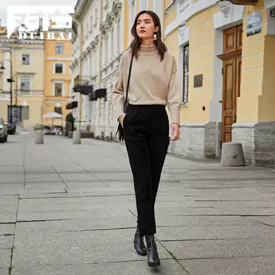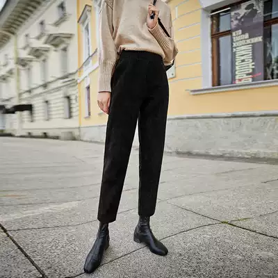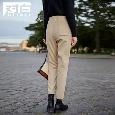 White elastic waist Haren pants women winter corduroy pipe pants thin OL wind casual long pants D2