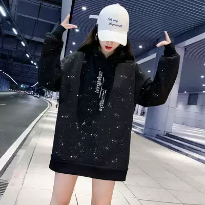 Hooded plus velvet plus thick cotton T women's large size casual pullover autumn and winter new trend loose lazy wind jacket top