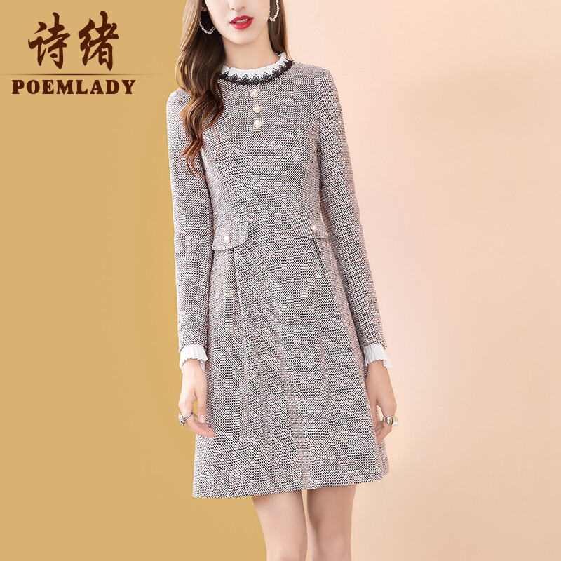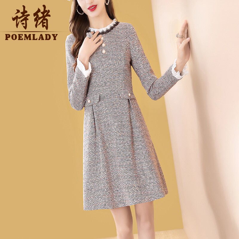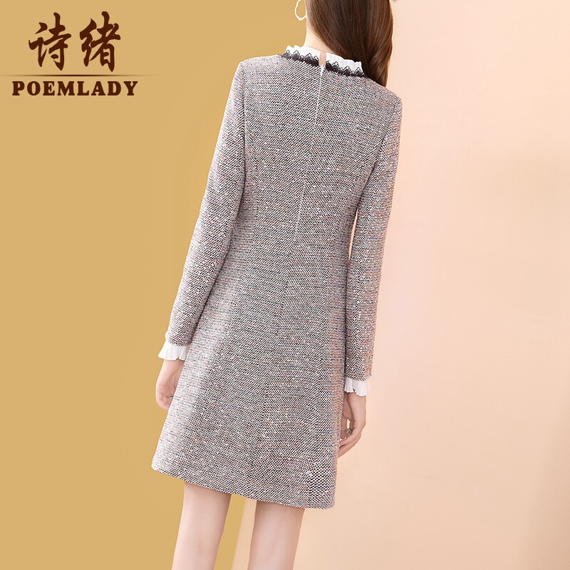 Poetry socialite small fragrant wind dress women short 2022 new spring long sleeve A- line dress base over the knee 50598
