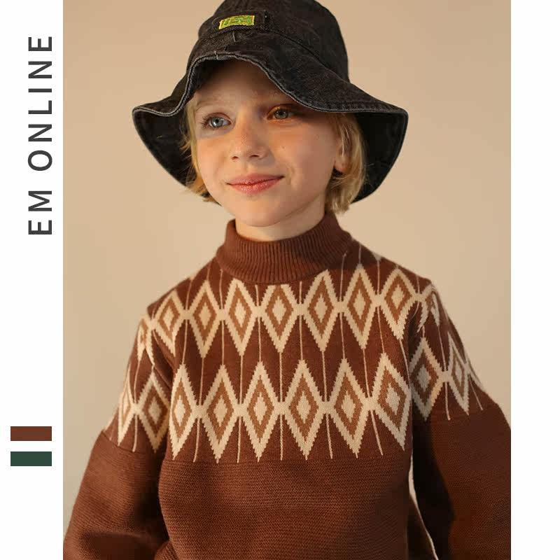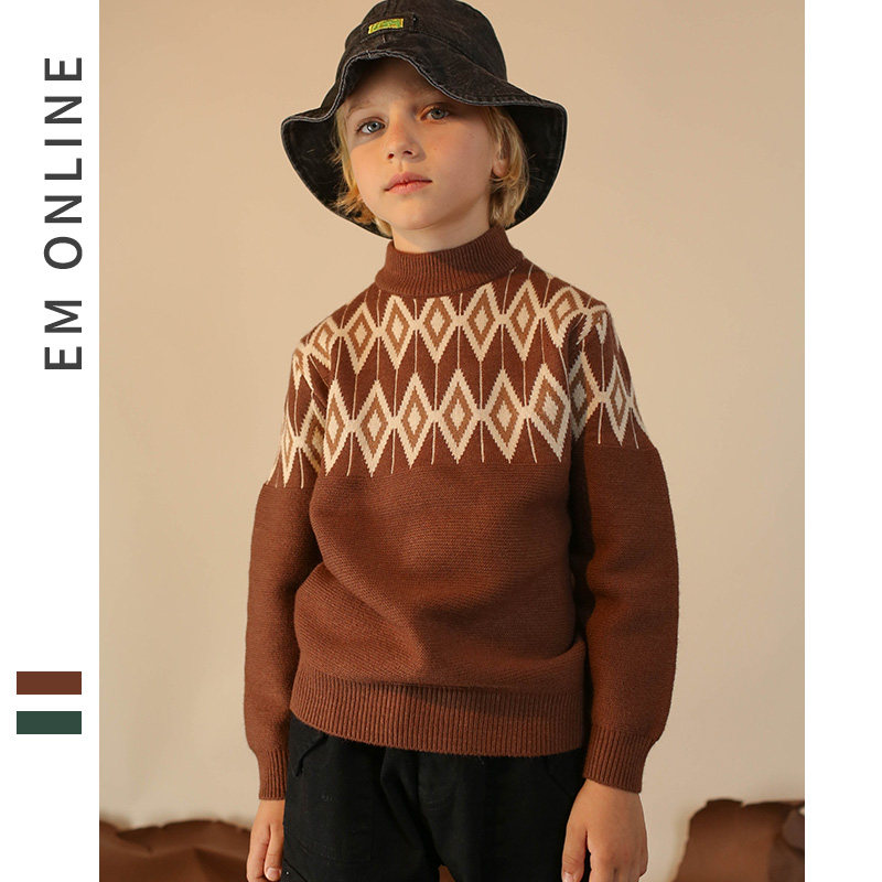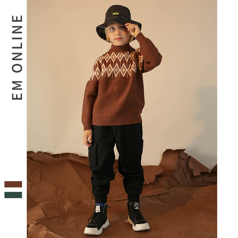 EM boys turtleneck sweater 2020 winter new sweater middle and large children knitted base sweater warm turtleneck sweater