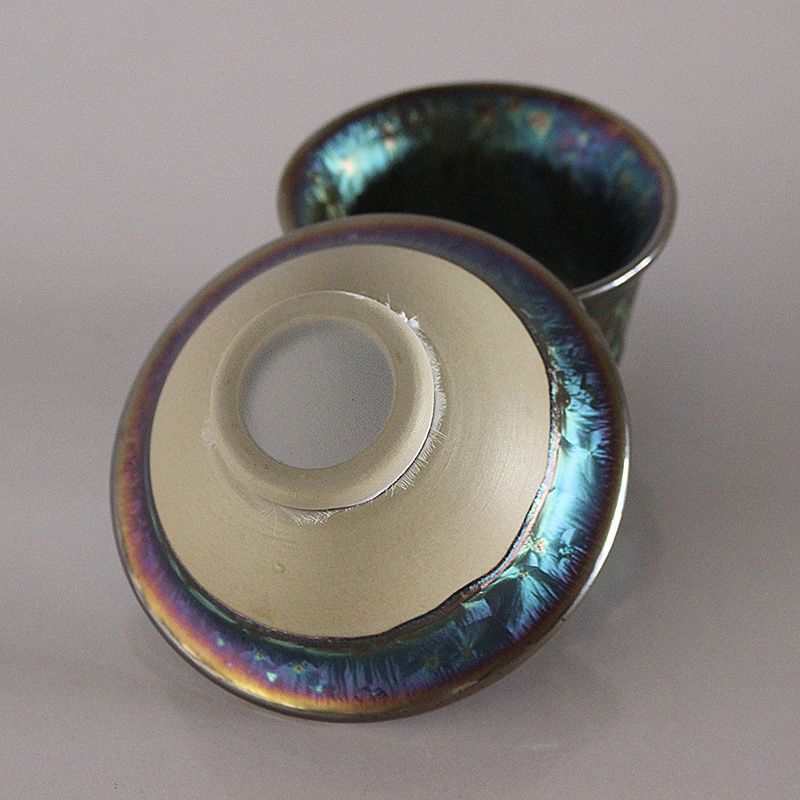 Colorful peacock tea leaking tea filter retro Jianzhan kung fu tea ceramic Tianmu glaze kiln change home creative Chinese style