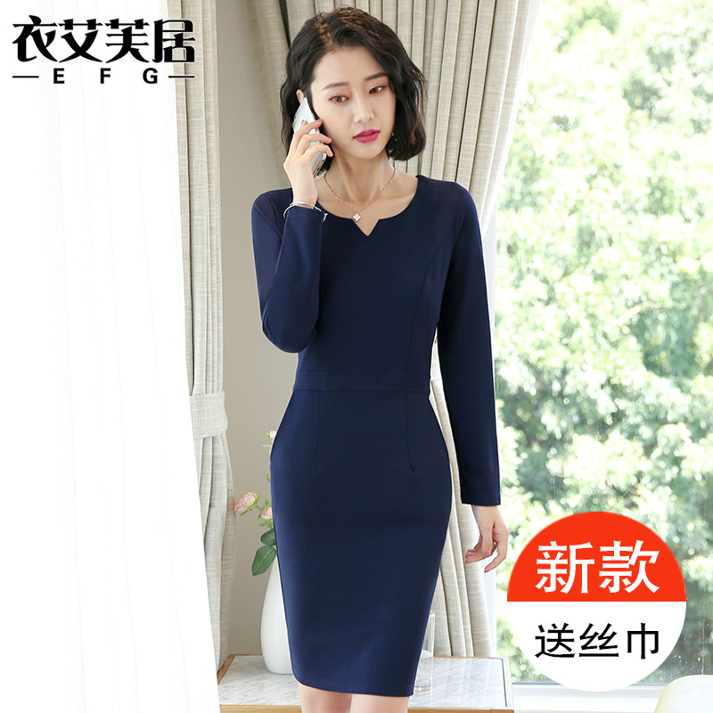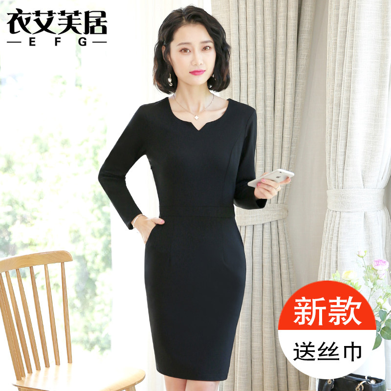 Career Foreign Dress Medium Long Version Temperament Tooling Long Sleeve Beauty Master Jewelry Hotel Work Clothes Autumn New Bag Hip Skirt