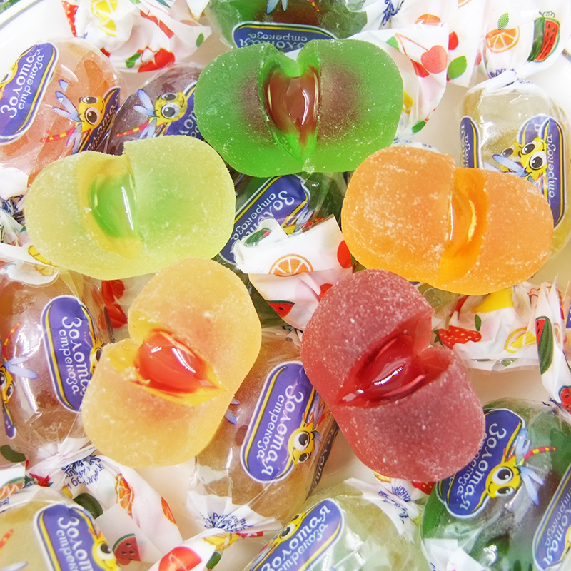 Russia imported KDV Dragonfly bee fruit flavor sandwich gummy juice burst pulp gummy snack 1000g
