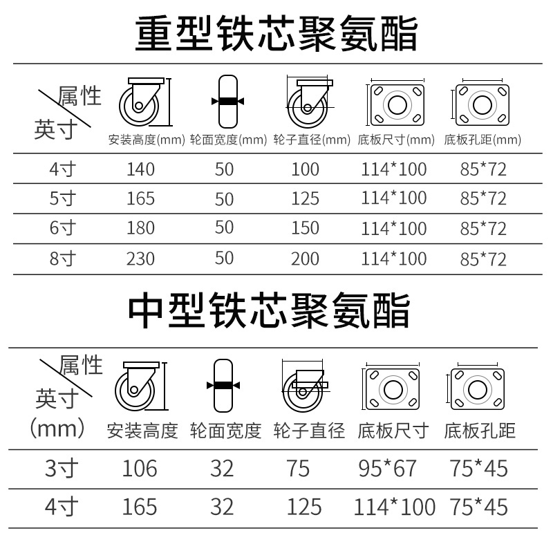 4-inch steering wheel 4-inch brake wheel 4-inch brake wheel 5-inch steering wheel 5-inch brake wheel 6-inch steering wheel 6-inch steering wheel 6-inch brake wheel 8-inch directional wheel