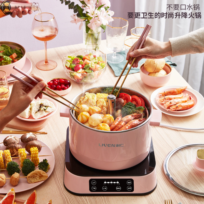 Li Ren automatic lifting electric hot pot pot Intelligent household multi-function integrated pot Electric pot Electric cooking pot Two-piece pot