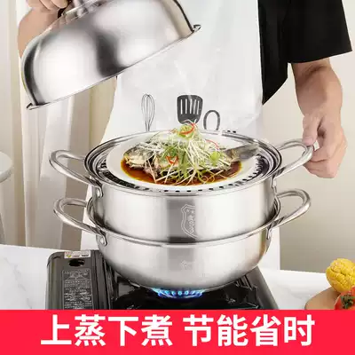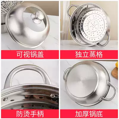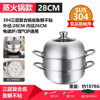 304 stainless steel steamer three layers more than 3 layers steamed bread steamer steamer thickening 1 two 2 layers household induction cooker 28cm