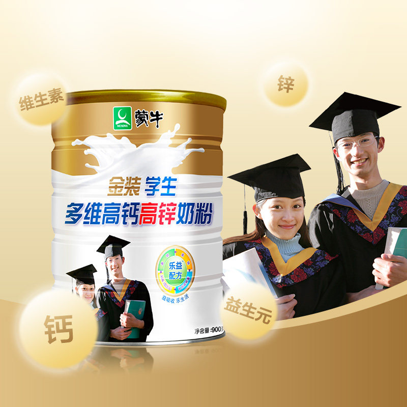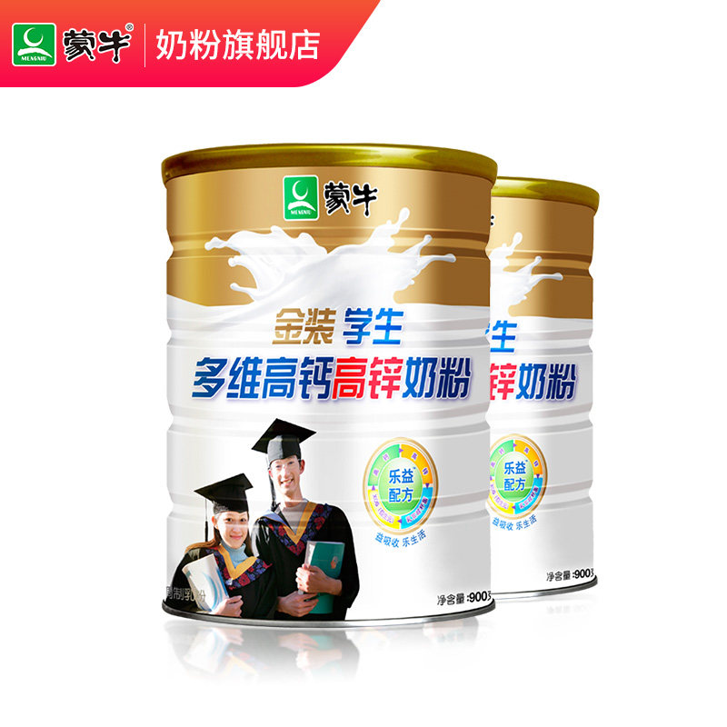 Mengniu Golden Student Milk Powder 900g * 2 High Calcium and High Zinc Youth and Children Senior high school University Male and Female Nutrition Growth