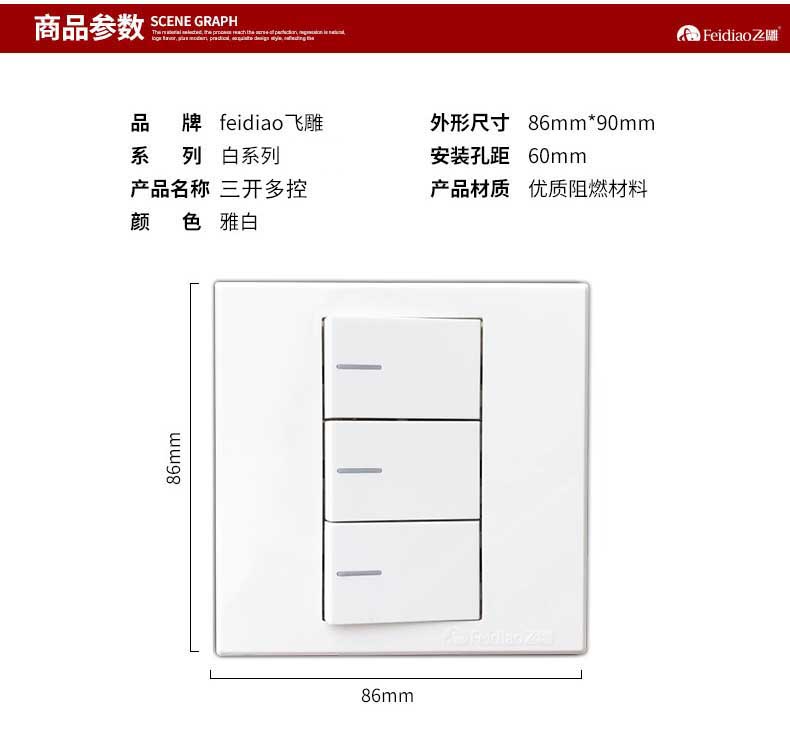 Flying Eagle 86 concealed three-open multi-control midway switch three-control switch household triple 3-position three-control double-cut light