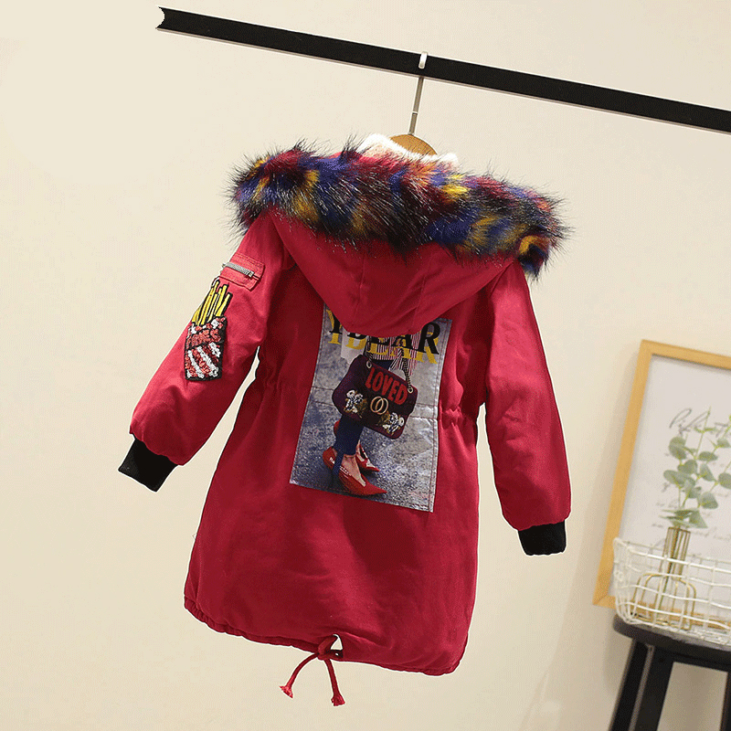 La Chabelle children's autumn and winter cotton clothes 2020 children's clothing new girls ' middle and large children's clothing in the long version of the wool collar quilted jacket tide