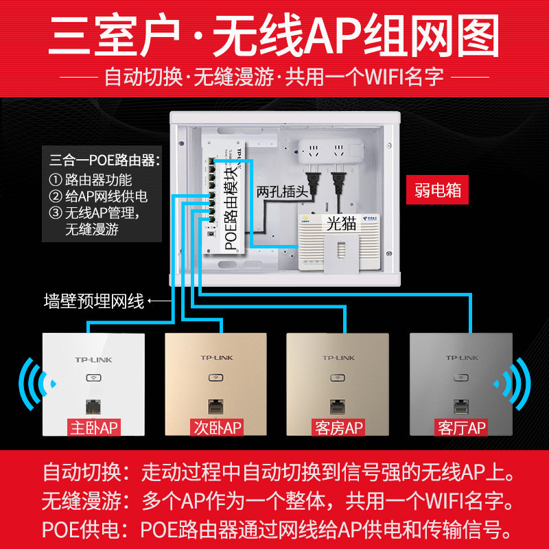 tplink wireless ap panel gigabit dual-frequency 86 type wall socket routing home whole house wifi coverage set