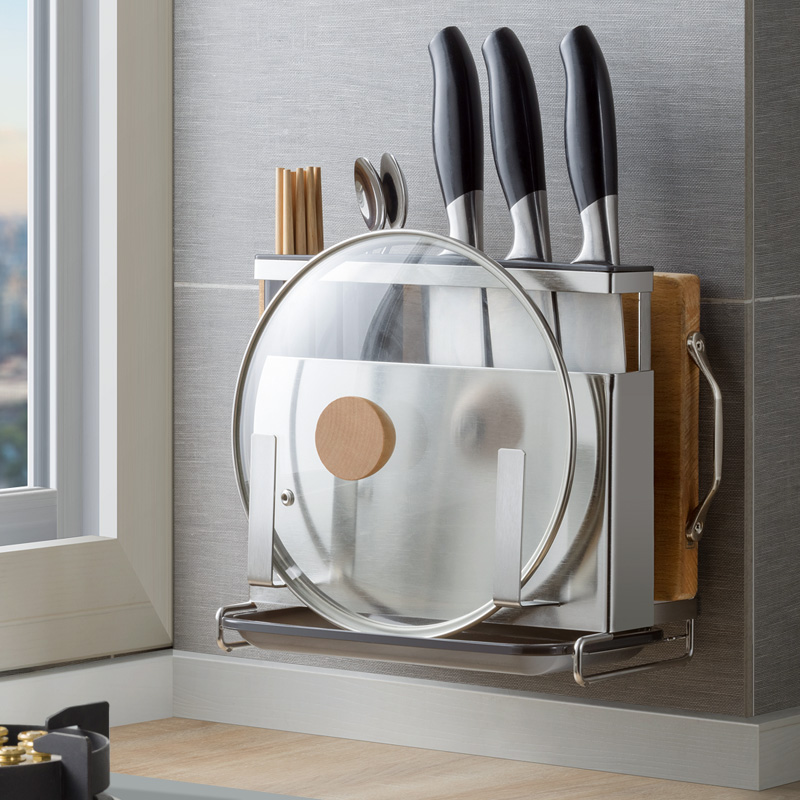 Stainless steel non-perforated knife holder kitchen rack wall-mounted pot cover knife holder tool storage layer rack household products