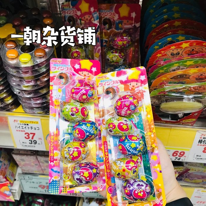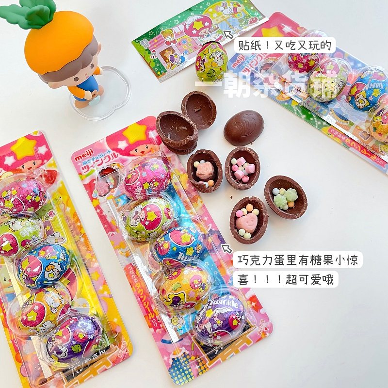 Japan Meiji Meiji Five Colorful Chocolate Egg Surprise Egg Sandwich Candy Children Import snacks Japanese food to play