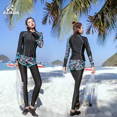 Diving suit for men and women couples long sleeve sunscreen two-piece swimsuit quick-drying trousers slim snorkeling jellyfish surf suit set