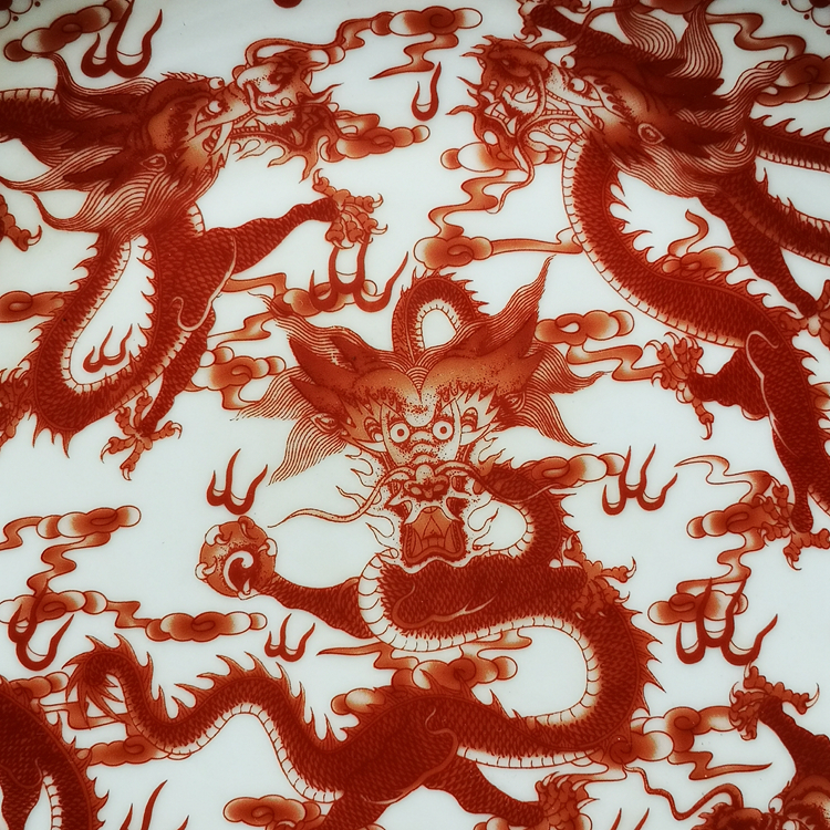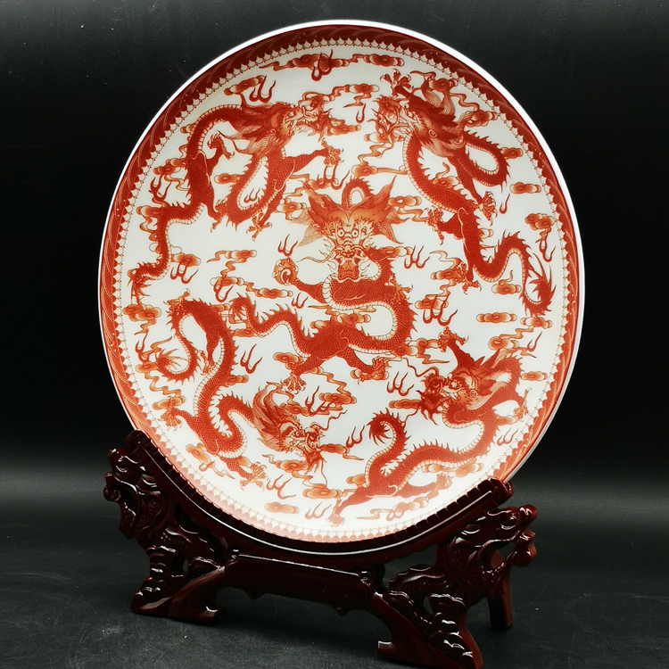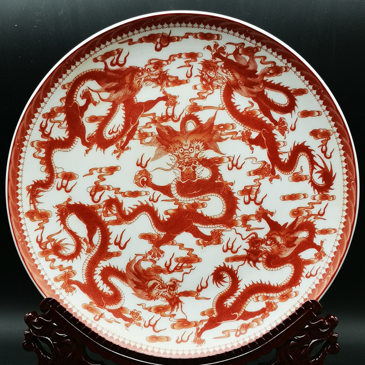 Qingqian Long Alum Red Five Dragon Dish Home Living Room Decoration Pendulum Tray Bogu Shelf Ancient Wind Old Objects Ancient Play Porcelain Pendulum-Taobao