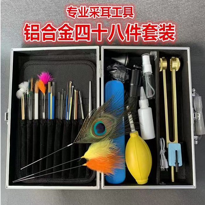Suit of ear tools 48 pieces of sets of sets of ear tools 15 pieces of sets with ear tools 12 pieces of sleeves 25cm Golden Tuning Fork 21 5cm Golden Tuning Fork Luminous Tweezers Earthen Scoop