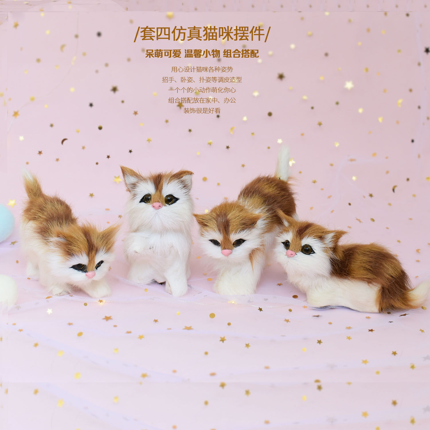 Set four simulation kitten animal model toy jewelry piece furniture for home furnishings creative widget